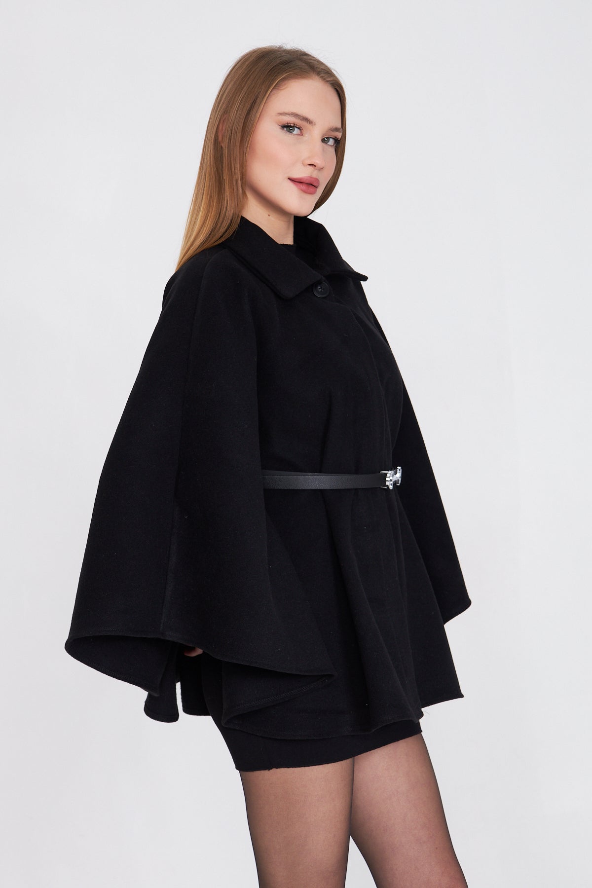 Siyah Kemerli Kaşe Panço